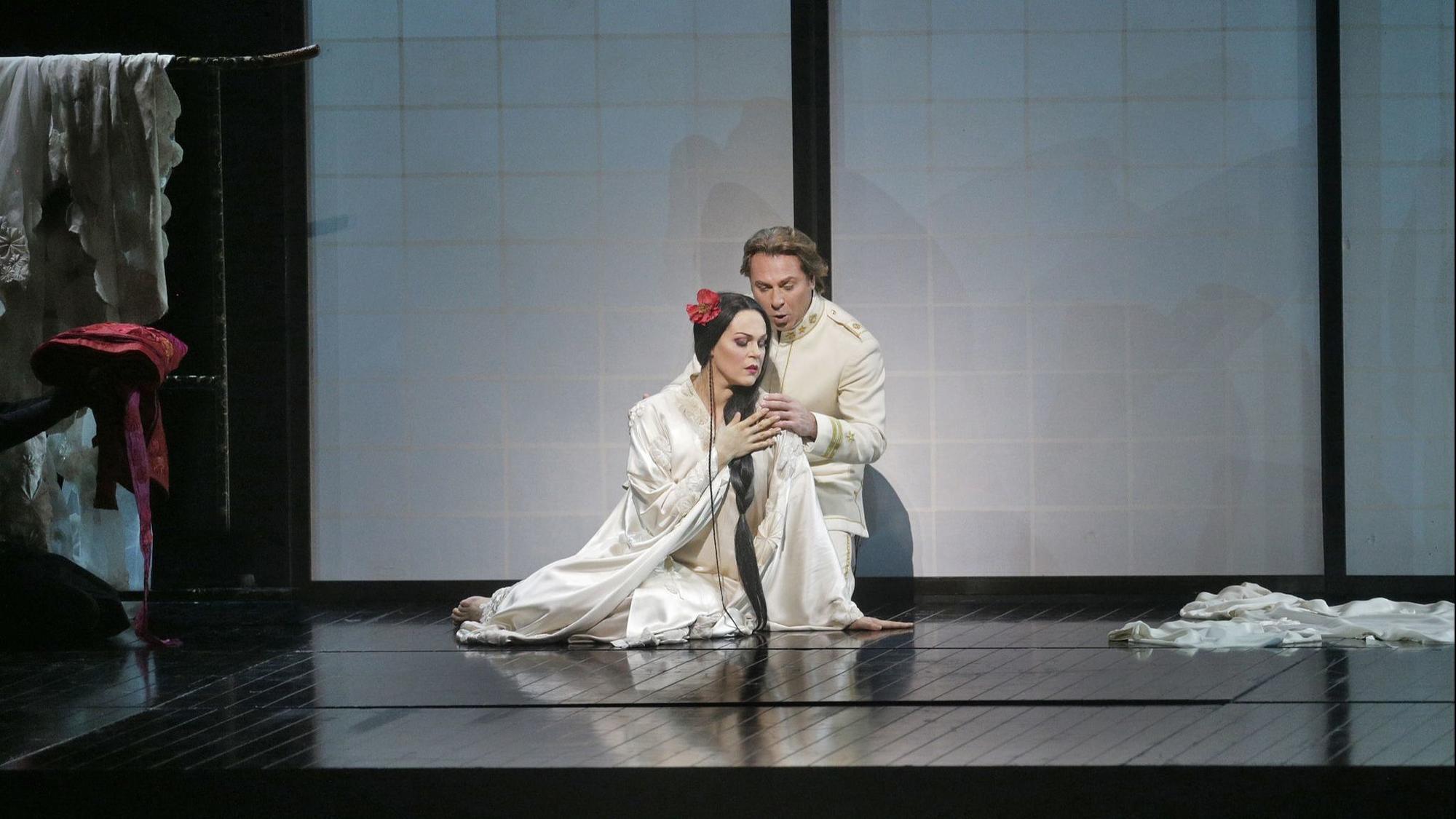 US Navy Lieutenant B. F. Pinkerton buys a house in Japan along with a bride, Cio-Cio San, a.k.a. Butterfly, to tide him over until he marries a "real" American wife. When he leaves for America, Cio-Cio San waits patiently and jumps for joy when his ship enters the harbor after th... Read all